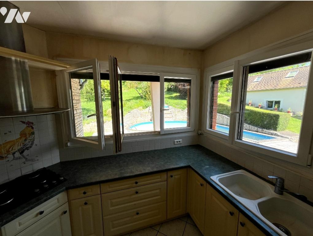 Maison avec piscine située à GENAINVILLE, proche de Magny-en-Vexin et Cergy-Pontoise, comprenant :